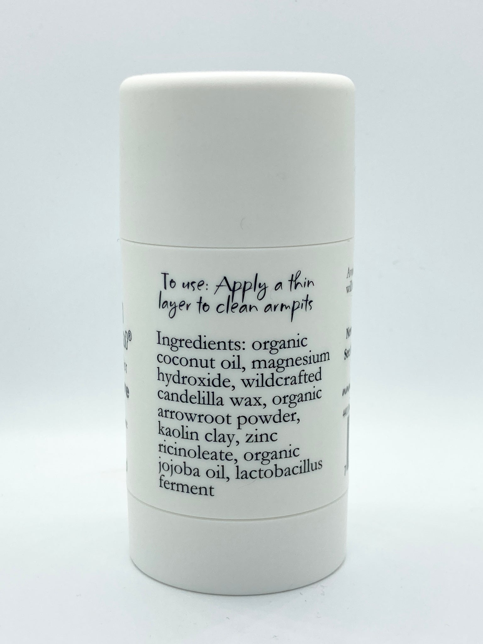organic coconut oil, magnesium hydroxide, wildcrafted candelilla wax, organic arrowroot powder, kaolin clay, zinc ricinoleate, organic jojoba oil, lactobacillus ferment